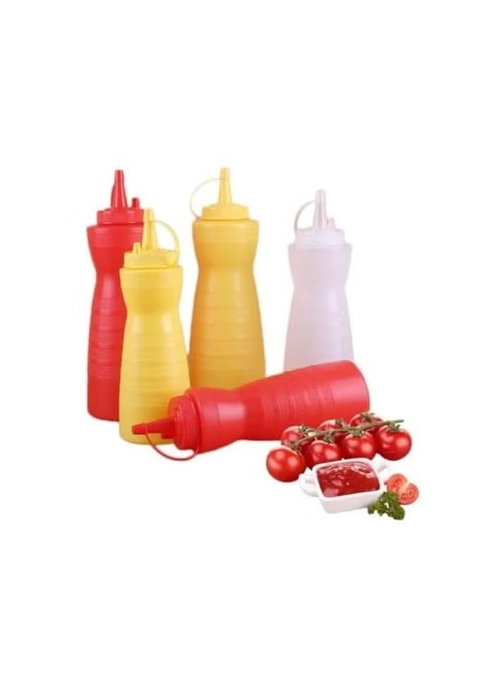 Generic - زجاجات كاتشب وخردل بلاستيكية قابلة لاعادة الملء، عبوتان، احمر واصفر، لمستلزمات المطبخ والمطاعم وشاحنات الطعام