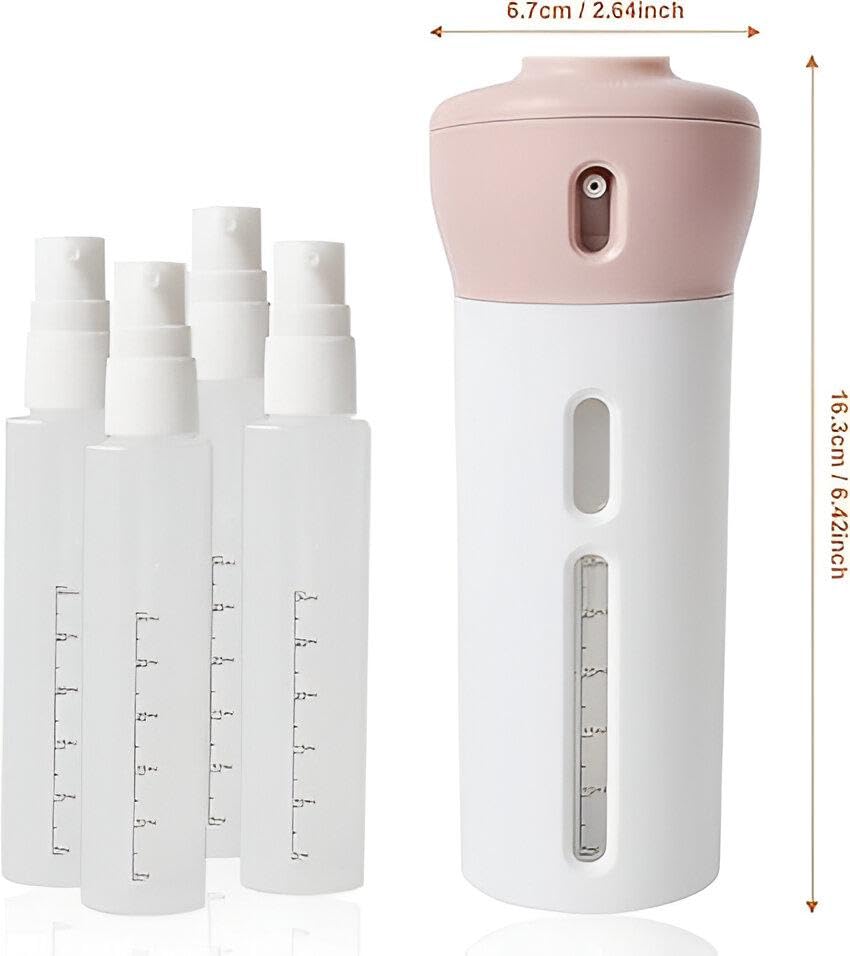 - يتميز موزع السفر 4 في 1 بتصميم فريد يدمج أربع زجاجات سفر قابلة لإعادة التعبئة في حقيبة توزيع واحدة متينة، مما يبسط احتياجات أدوات الزينة الخاصة بك أثناء السفر ويزيل متاعب الزجاجات الفردية المتعددة. يمكنك التبديل بسهولة بين الأقسام المختلفة عن طريق تدوير الجزء العلوي، مما يوفر وصولاً فوريًا إلى الشامبو أو البلسم أو اللوشن أو غسول الجسم أو السيروم أو معقم اليدين بضغطة بسيطة.