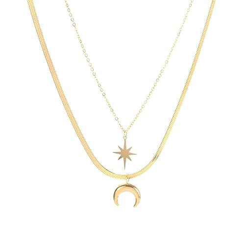 Generic - قلادة مموجة مصقولة - سلسلة ذات طبقات عالية الجودة مع قلادة ذهبية على شكل نجمة على شكل قمر، تجمع بين الأناقة والبساطة للمرأة الراقية.