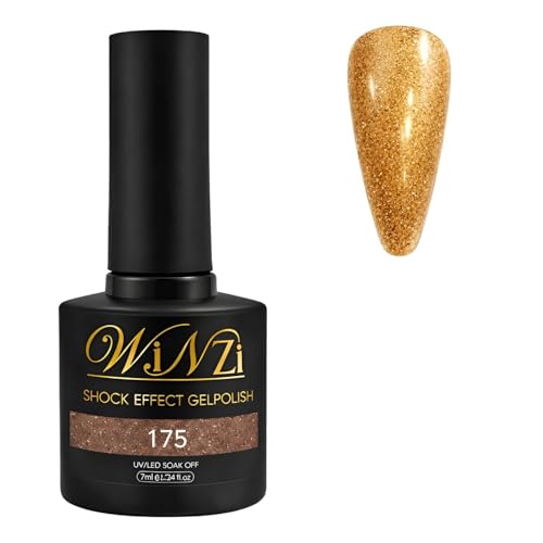 WINZI - طلاء اظافر جل ذهبي عاكس 7 مل، طلاء جل لامع ذهبي لامع مقاوم للاشعة فوق البنفسجية مع تاثير صدمة عاكس، لمعان عالي، تطبيق سلس لفن الاظافر وصالونات التجميل والمانيكير في المنزل (175)