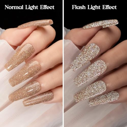 - تأثير صدمة عاكسة: جزيئات عاكسة خاصة تخلق تأثير لمعان قوي عندما يضرب الضوء الأظافر.