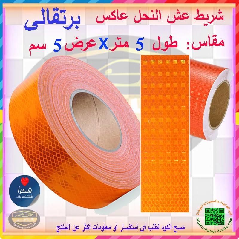 Generic - شريط عاكس ، تقنية منشورية مع مكعبات من البلورات الدقيقة يزيد من السطوع ويكون واضحًا بشكل في الليل (عش النحل لون برتقالى ، طول 5 متر، عرض 5 سم) - من كابر تريد