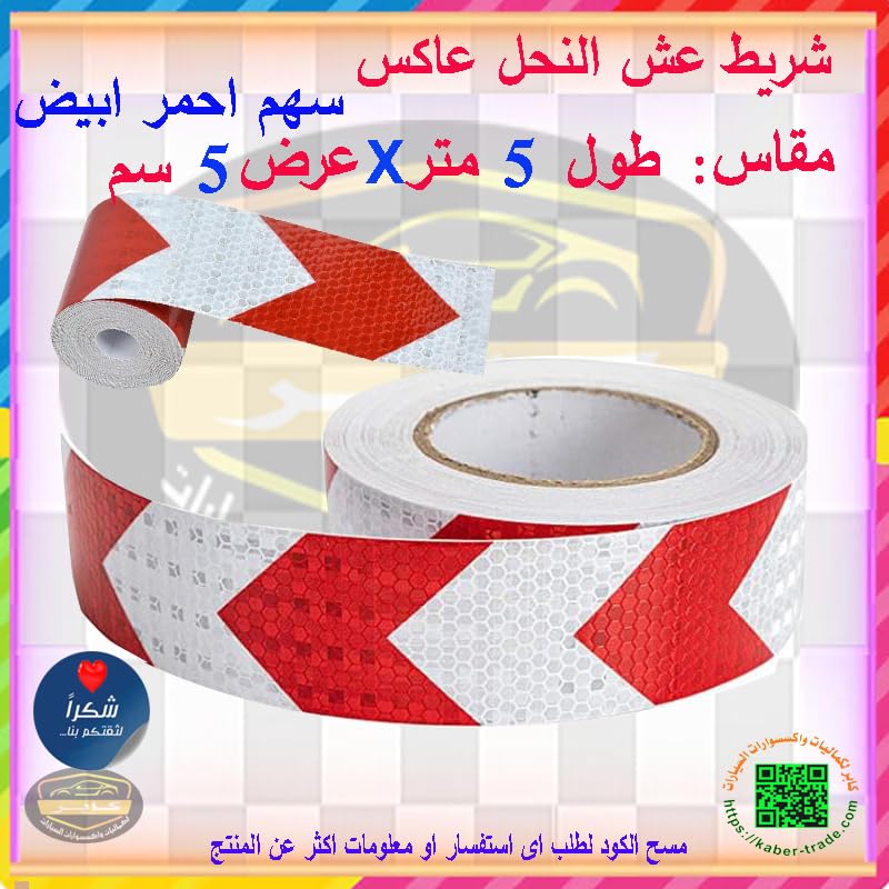 Generic - شريط عاكس ، تقنية منشورية مع مكعبات من البلورات الدقيقة يزيد من السطوع ويكون واضحًا بشكل في الليل (عش النحل سهم احمر ابيض ، طول 5 متر، عرض 5 سم) من كابرمصر 2020