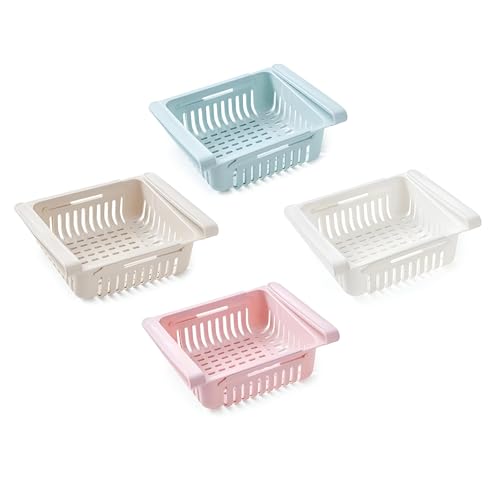 Generic - سلة تنظيم الثلاجة - رفوف مقسمة قابلة للتعديل لتنظيم وكفاءة رفوف المطبخ الصديقة للبيئة (4 قطع باللون الموضح)