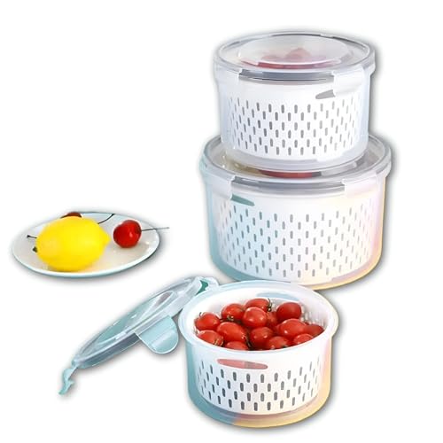 Generic - صناديق ثلاجة - صناديق تخزين كبيرة فاخرة للفواكه والخضروات مع اغطية ومصافي، خالية من BPA، مثالية للحفاظ على منتجاتك طازجة، مجموعة من 3 قطع