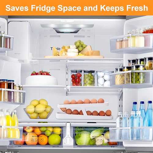 - قم بإحداث ثورة في تخزين البيض لديك باستخدام موزع البيض الدوار المبتكر ذو المستويين، والذي تم تصميمه لحمل 14 بيضة بشكل آمن في ثلاجتك، مما يضمن نضارة مثالية وسهولة الاسترجاع في كل مرة.