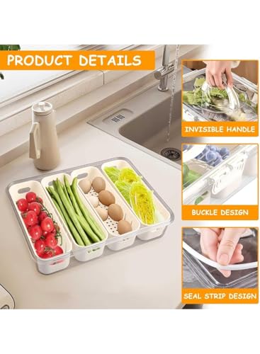 generic - حاويات تخزين الطعام للثلاجة مع اغطية محكمة الغلق - منظمات ثلاجة بلاستيكية مكونة من 4 اقسام للفواكه والخضروات