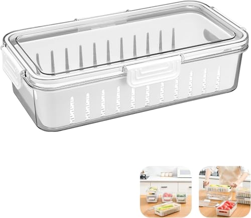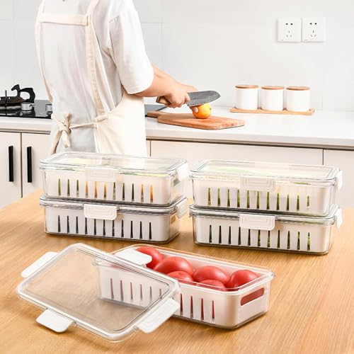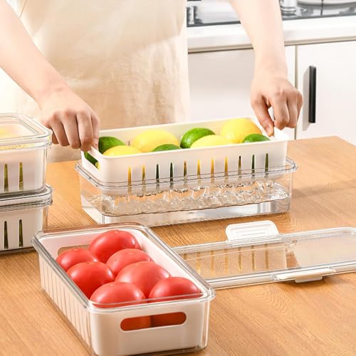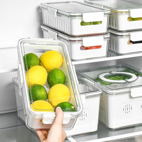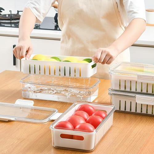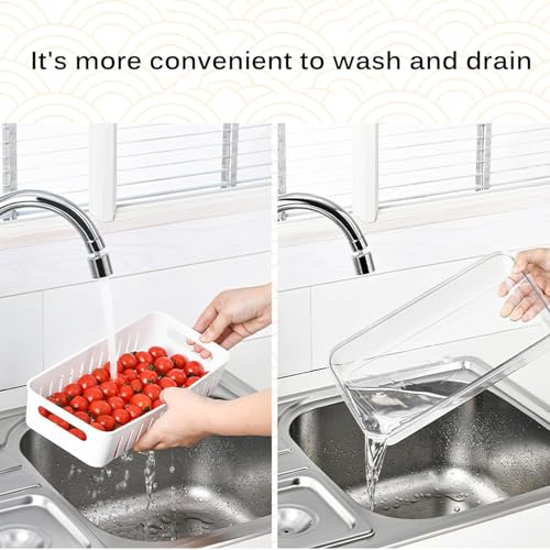 Spaceshoop - علب حفظ طعام للثلاجة مع أغطية، علب تخزين طعام شفافة للثلاجة مع صينية تصريف، علب تخزين الفواكه والخضروات الطازجة، مقاس 30 × 15 (قطعة واحدة)