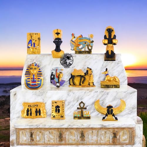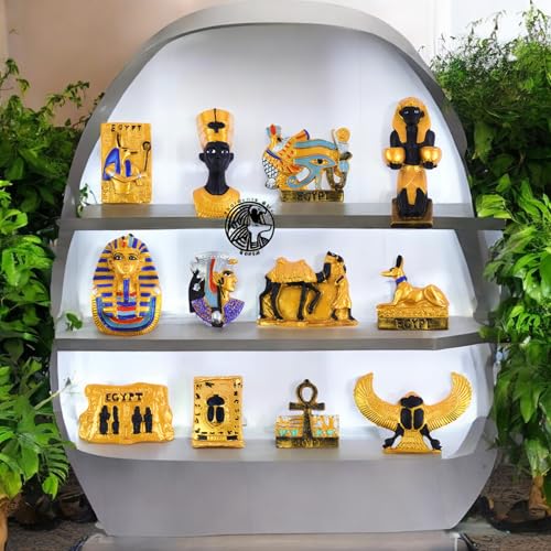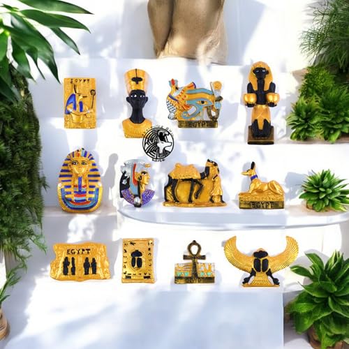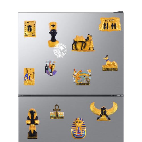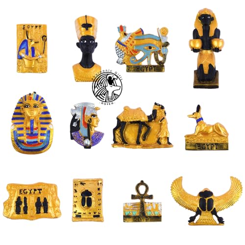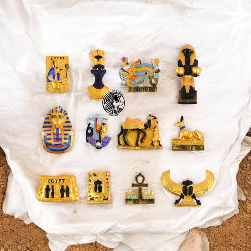 Generic - مغناطيس ثلاجة عدد 12 قطعة (دستة) أشكال فرعونية ثلاثية الأبعاد بارزة - صناعة يدوية مصرية من البورسلين من روچيه متوسط مقاس القطعة الواحدة 8*5 سم - مجموعة رقم 1