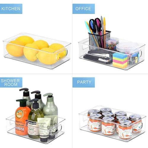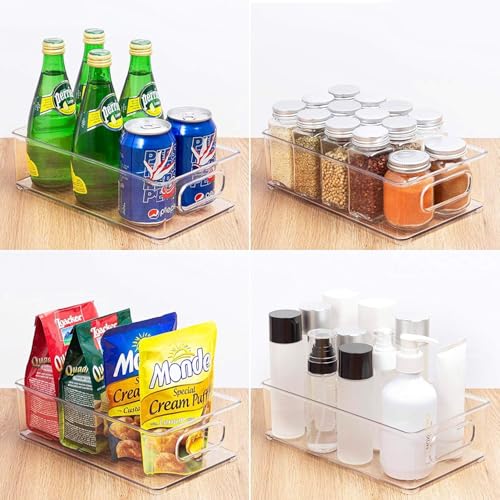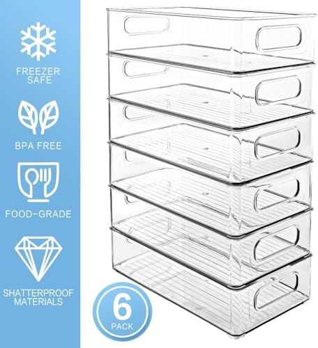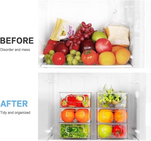 Generic - صناديق تنظيم الثلاجة، 6 عبوات صناديق تنظيم قابلة للتكديس مع مقابض مفرغة للفريزر والمطبخ وسطح الطاولة والخزائن - رف تخزين طعام بلاستيكي شفاف