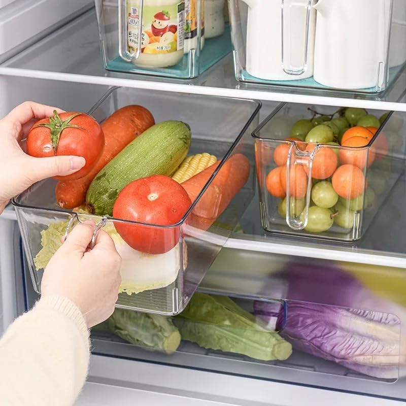 Generic - صناديق تنظيم الثلاجة، صندوق تخزين ، صناديق بلاستيكية شفافة للثلاجة والفريزر وخزانة المطبخ وتنظيم مخزن المؤن والتخزين، منظم ثلاجة خالٍ من مادة BPA (28سم×10سم×9سم من غير غطاء)