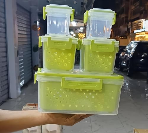 Generic - مجموعة تنظيم الثلاجة - 5 قطع مع اغطية محكمة الغلق وفواصل داخلية بمقاسات مختلفة، متعددة الاستخدامات