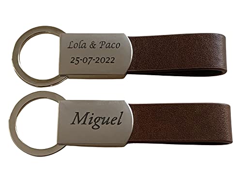regalo grabado - ريجالو جرابادو - حلقة مفاتيح مخصصة من الستيل والبولي يوريثين | منقوشة بنص من اختيارك | مثالية للمناسبات والهدايا التذكارية | سهلة الفتح | معدن وجلد | وحدات