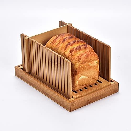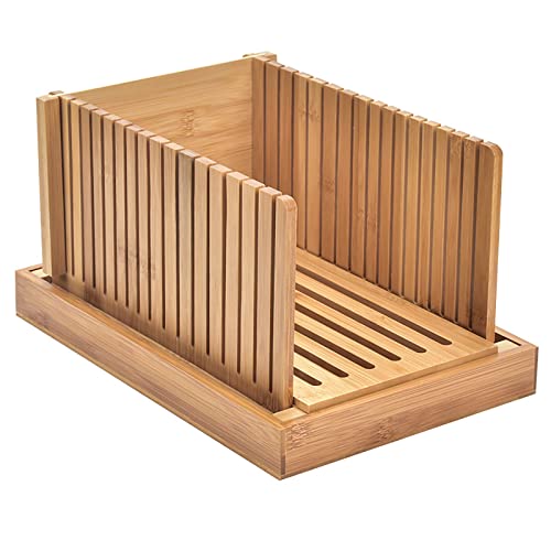 Rehomy - ريهومي قطاعة خبز من الخيزران - سمك 3 شرائح، دليل تقطيع صغير قابل للطي مع صينية للفتات، للخبز المنزلي والكيك، 12.6 × 4.7 × 6.9