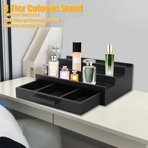 Rehomy - منظم كولونيا من الخشب من 3 طبقات للرجال، رف عرض كولونيا مرتفع لتنظيم وتخزين العطور مع درج للتخزين من ريهومي