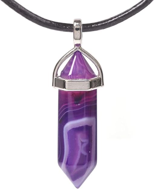 Generic - قلادة ريكي شاكرا أشار الأحجار الكريمة الطبيعية عقيق ارجوانى عروق ، للبالغين من الجنسين