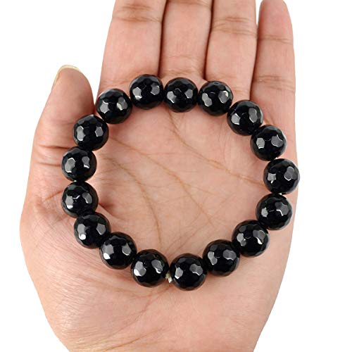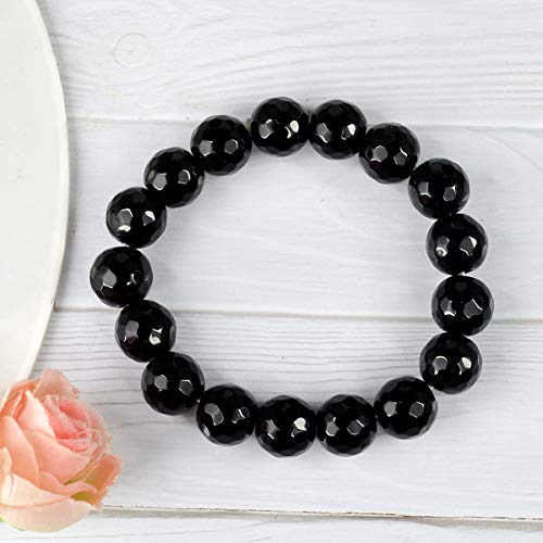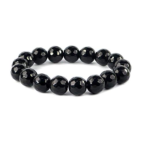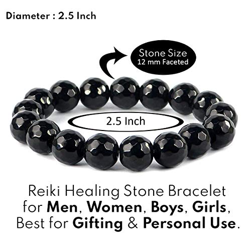 Reiki Crystal Products - منتجات الكريستال ريكي سوار العقيق الأسود 12 مم الماس قطع حجر كريستال لريكي شفاء وعلاج اللون: أسود طبيعي الطبيعي للجنسين الكبار