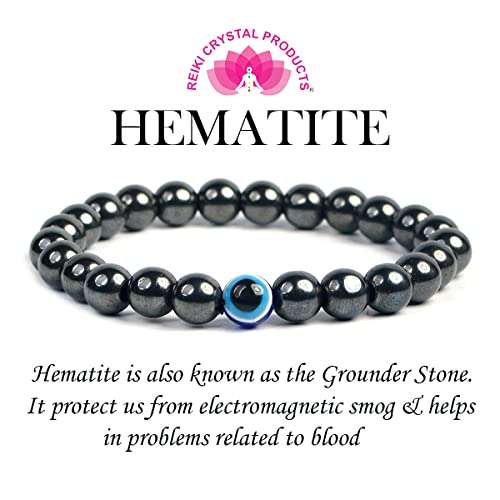 Reiki Crystal Products - منتجات ريكي كريستال سوار عين الحسد من السيترين والكوارتز الوردي وعين النمر والحمم البركانية والعقيق والجمشت العلاجي اللون: متعدد احجار طبيعية حجر الدم للبالغين الجنسين .