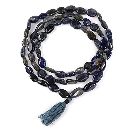 Reiki Crystal Products - منتجات ريكي كريستال خرز بيضاوي من حجر الايوليت مالا الكريستالي الطبيعي لحجر الريكي العلاجي اللون: ازرق طبيعي ايوليت للبالغين الجنسين