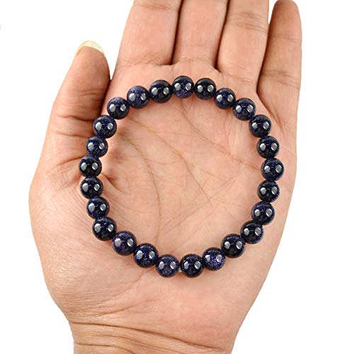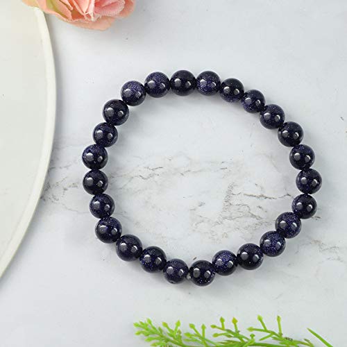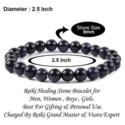 Reiki Crystal Products - سوار من حجر كريستالي طبيعي شبه كريم 8 ملم على شكل دائري للعلاج بالريكي واحجار الشاكرات ريكي كريستال بروداكتس الذهب الأزرق للبالغين الجنسين