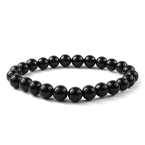 Reiki Crystal Products - سوار من حجر كريستالي طبيعي شبه كريم 8 ملم على شكل دائري للعلاج بالريكي واحجار الشاكرات ريكي كريستال بروداكتس التورمالين الأسود للبالغين الجنسين