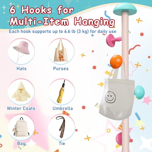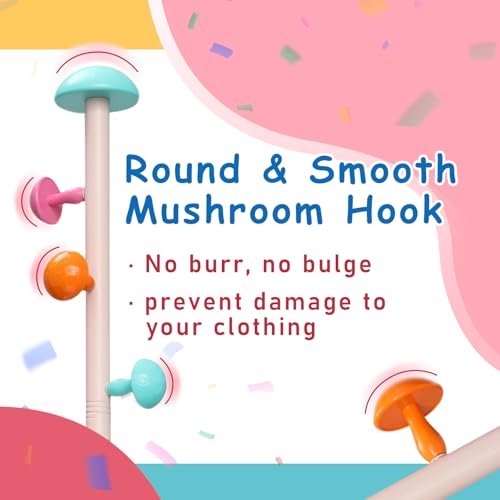 - خطافات رف الفطر اللطيفة: تم تصميم 7 خطافات على شكل فطر مع راديان دائري وناعم، مما يمنع الملابس والقبعات من التلف بسبب الأجزاء القاسية. ألوان زاهية نابضة بالحياة تناسب ديكورك حقًا