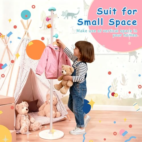 REILEIHODE - حامل معاطف للاطفال معدني شديد التحمل قائم بذاته من ريليهود، 7 خطافات دائرية على شكل فطر وقاعدة رخام متينة من الرخام لتعليق الشنط والشنط والجاكيتات في الردهة والمكتب والمرآب والمدخل
