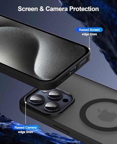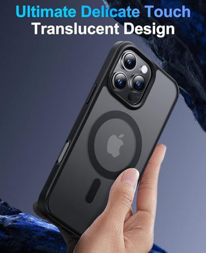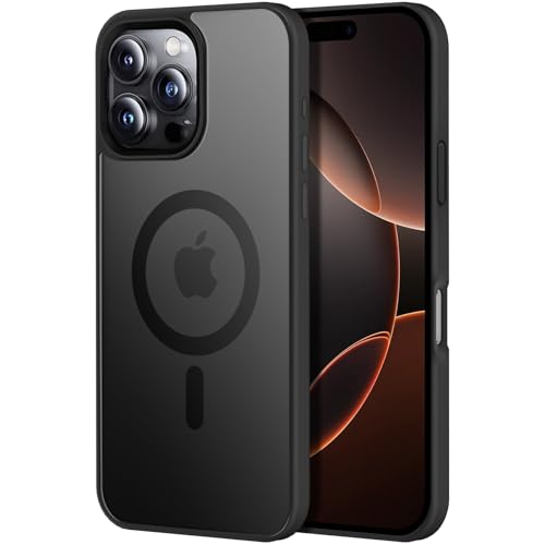 Reioo - جراب مغناطيسي من ريو لموبايل ايفون 16 برو ماكس متوافق مع ماج سيف مضاد للاصفرار والصدمات البولي يوريثين المقاوم للحرارة لون أسود