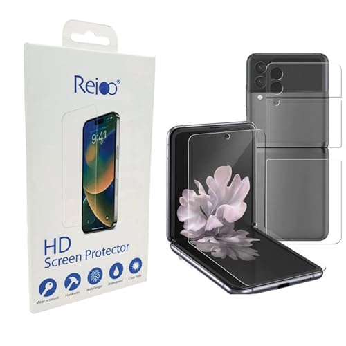 Reioo - اسكرين امامي وخلفي من النانو جيلاتين المقوي لهاتف سامسونج Z flip 3، شفاف