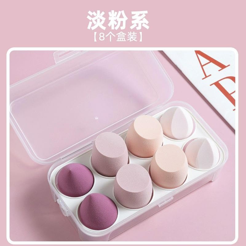 - طقم بيوتي بلندر 8 قطع يساعد في دمج الفاونديشن والكونسيلر والكونتور واللوس بودر على البشرة.