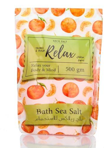 Relax - ملح البحر للاستحمام بالخوخ والبرتقال من ريلاكس - 600 جرام