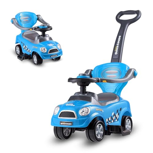 RELAX4LIFE - سيارة ركوب 3 في 1 للاطفال من ريلاكس 4 لايف، سيارة دفع مع حجرة حماية قابلة للفصل، صندوق تخزين ومقبض بوق، خطوات اولى للاطفال من عمر 2-6 سنوات (ازرق)