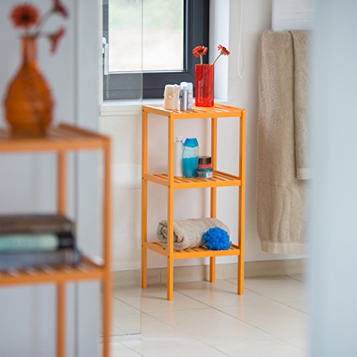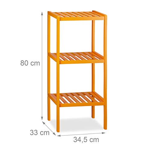 Relaxdays - رف حمام من الخيزران مع 3 من ريلاكس دايز، 80 × 34.5 × 33 سم، وحدة رفوف ملونة للأطفال، حامل المطبخ، برتقالي، 33 × 34.5 × 80 سم، مطلي بلمعة