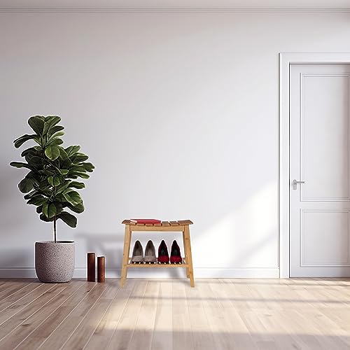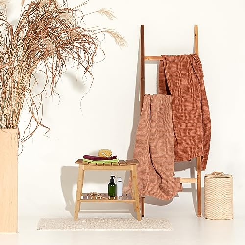 Relaxdays - مقعد حمّام من الخيزران مع رف إضافي للفوط متعدد الاستخدامات الأبعاد: الارتفاع × العرض × العمق من ريلاكس دايز 45 × 51.5 × 34 سم، مساحة تخزين، طبيعي