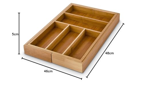 Relaxdays - منظم ادراج المطبخ من الخيزران ريلاكس دايز عرض قابل للتعديل صينية ادوات مائدة 30 الى 48 سم 5 7 مقصورات لون بني