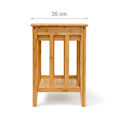 Relaxdays - طاولة جانبية بامبو مع درج من ريلاكس دايز، الارتفاع × العرض × العمق المقاس التقريبي: طاولة جانبية من الخشب المتين، مزودة بدرج ورفين للتخزين، مقاس 51.5 × 40.5 × 30.5 سم، لون بني (Natural)