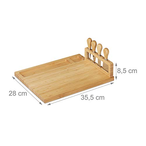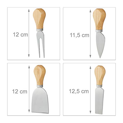 Relaxdays - لوح جبن مع سكينة تشكيل ناعمة وصلبة وشوكة وجاروف من البامبو والفولاذ المقاوم للصدأ لتقديم الطعام وتزيين المائدة من ريلاكس دايز، لون ناتشورال