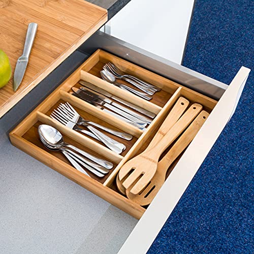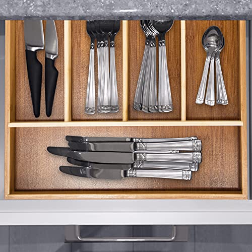 - صينية أدوات مائدة أنيقة مصنوعة من الخيزران الطبيعي المستدام - ضع حدًا للفوضى في درجك - يضمن منظم المطبخ هذا النظام والوضوح على حد سواء