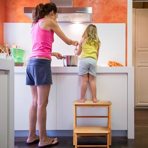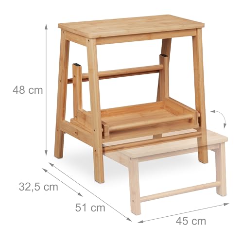 Relaxdays - مقعد قابل للطي بدرجتين يتحمل وزن حتى 100 كيلوجرام للأطفال والمنزل مقاس 48 × 45 × 51 سم من الخيزران من ريلاكس دايز، لون خشبي طبيعي
