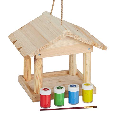 Relaxdays - بيت طيور معلق من ريلاكس دايز، وحدة تغذية طيور صغيرة للحديقة والشرفة، خشب غير معالج، طبيعي، بني، عبوة من قطعة واحدة