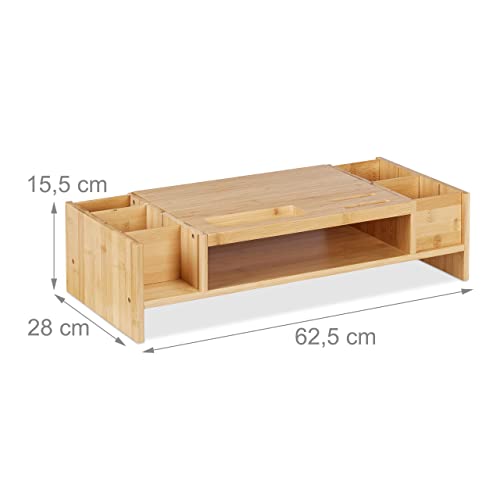 Relaxdays - حامل شاشة من البامبو مع مساحات تخزين اتش دبليو دي 15.5 × 62.5 × 28 سم، قاعدة عرض للمكتب من الخشب الطبيعي 100% من ريلاكس دايز، 1