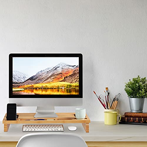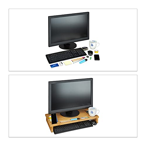 Relaxdays - حامل شاشة ناتور من البامبو من ريلاكس دايز، حامل شاشة للاب توب، حامل شاشة مع مساحة تخزين، اتش بي تي 9 × 60 × 30 سم، قياسي