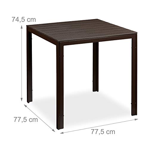 Relaxdays - طاولة حديقة مربعة بتأثير خشبي، طاولة طعام للحديقة والشرفة والتراس من ريلاكس دايز، مقاس 74.5 × 77.5 × 77.5 سم، لون بني