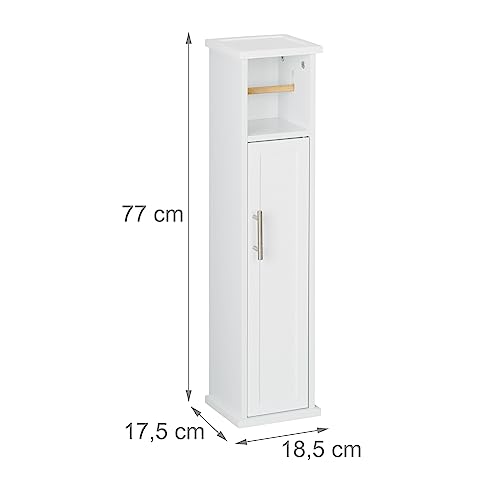 Relaxdays - حامل ورق تواليت قائم مكون من قسمين، رف حمام من ريلاكس دايز، مقاس: 77 × 18.5 × 17.5 سم، خزانة ورق المرحاض، لون أبيض/فضي، خشب ام دي اف