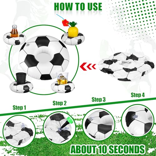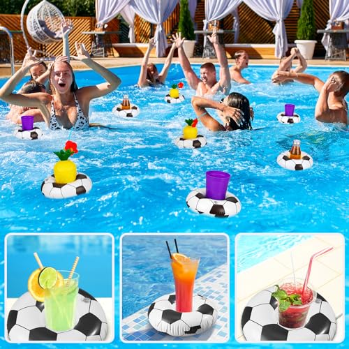 - مادة عالية الجودة لضمان استخدام طويل الأمد: تم تصنيع حامل أكواب المسبح من بلاستيك بي في سي عالي الجودة، مما يمنحه تصميمًا متينًا وقويًا غير عرضة للبهتان أو التشقق، ويوفر استخدامًا طويل الأمد. تطفو هذه الحوامل بسهولة على سطح الماء، مما يجعلها إضافة مثالية لاكسسوارات المسبح. كما أن قواعد الأكواب المصممة على شكل كرة قدم سهلة النفخ باستخدام المضخة المرفقة، وسهلة التفريغ والتخزين، مما يجعلها قابلة لإعادة الاستخدام وتوفر قيمة مستمرة.