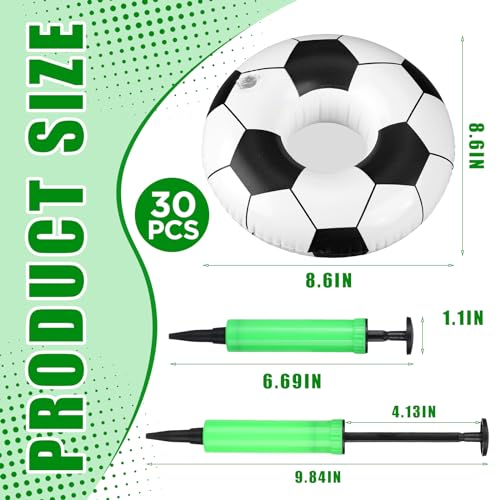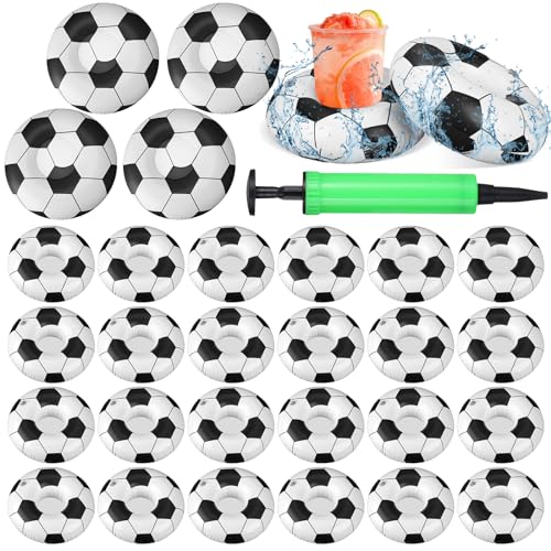 Relaxgiant - حوامل أكواب عائمة على شكل كرة القدم القابلة للنفخ ، حامل اكواب عائم لحمام السباحة والبيسبول وحامل للطاولة، رف عائم مع مضخة للبالغين والشاطئ وحمام السباحة 30 قطعة من ريلاكس جاينت