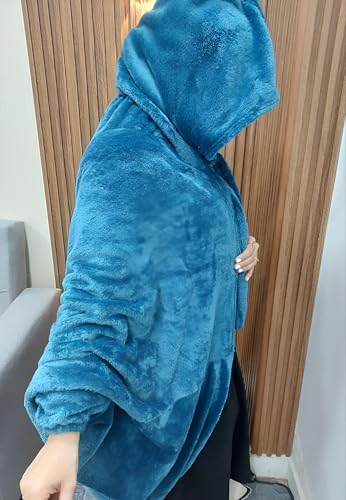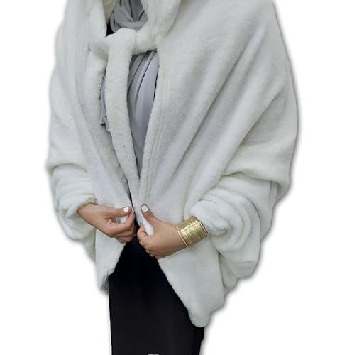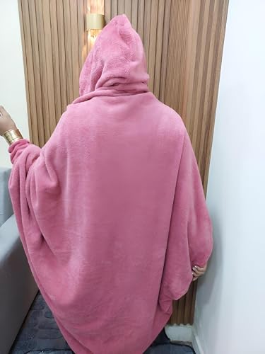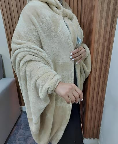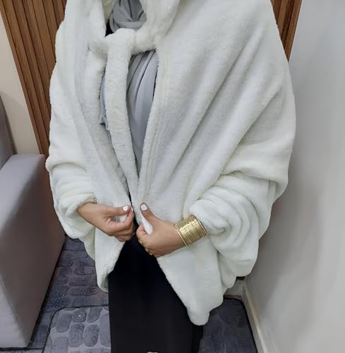 Generic - زي شتوي مريح - لف بدون اكمام من الصوف المخملي مع غطاء للرأس، كبير الحجم وناعم، مثالي للاسترخاء او النوم، متوفر باللون الابيض والبيج والبينك الانيق