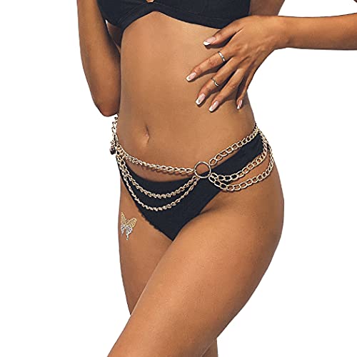 RELBCY - Relbcy Boho طبقات الخصر سلاسل الذهب البطن الجسم سلاسل بيكيني مجوهرات للجسم الصيف الشاطئ الخصر اكسسوارات للنساء والفتيات