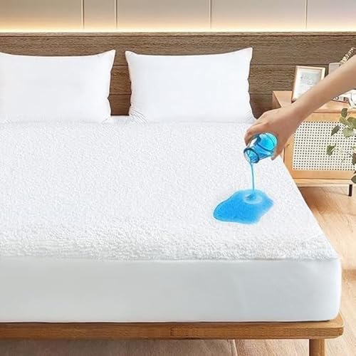 Rellinda - واقي مرتبة فاخر مقاوم للماء من ريليندا مع 2 كيس وسادة ابيض 70 × 50 سم سرير جيد التهوية ومضاد للحساسية فائق النعومة 120 200 .