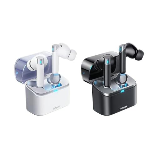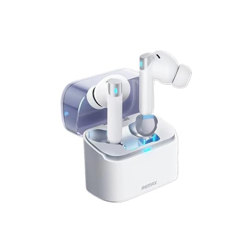 Remax - سماعات أذن لاسلكية W28N كوزي بودز بخاصية إلغاء الضوضاء النشطة من ريماكس، مشغل سيليكون 13 ملم، عمر بطارية 30 ساعة، تصميم مريح مع تقنية اتصال DNS، لون أسود وأبيض (أبيض)